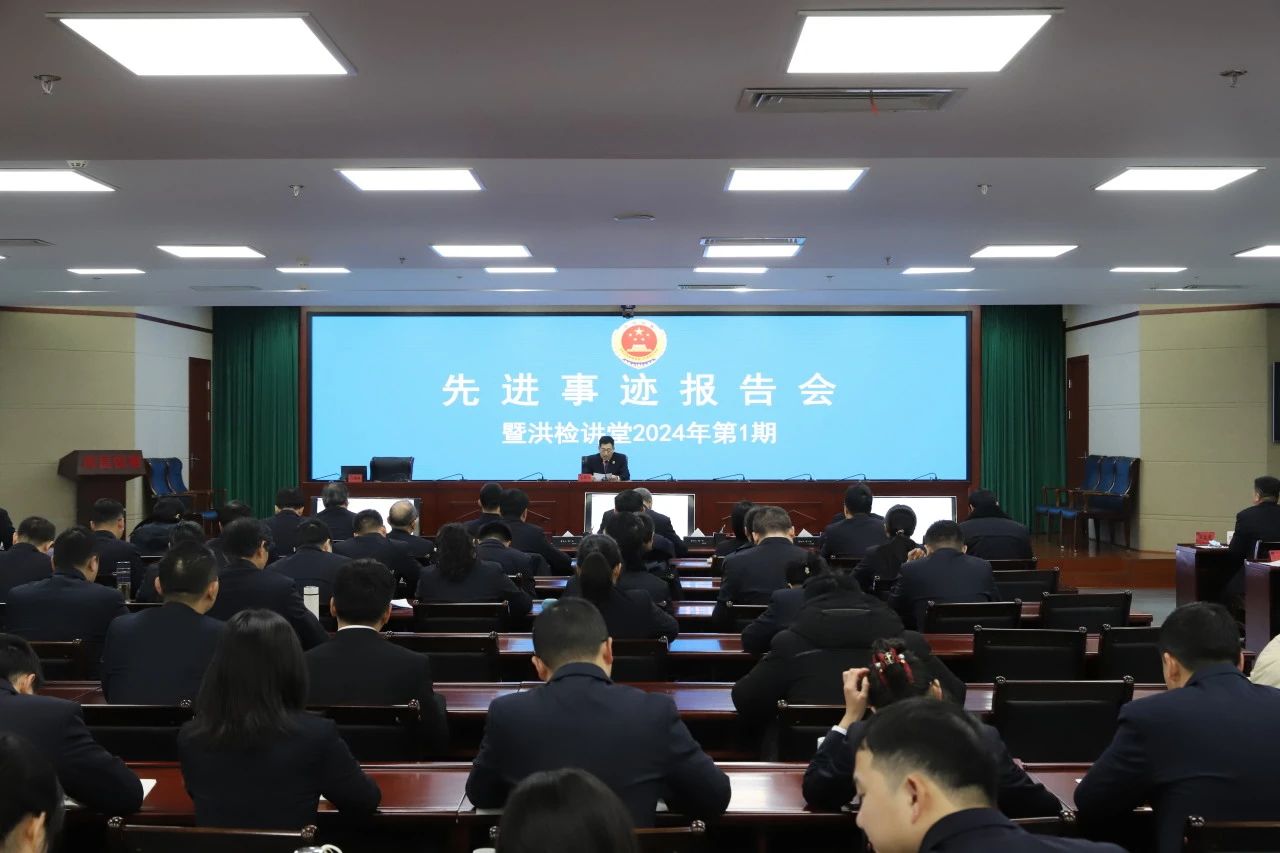 为充分调动全市检察干警接续奋斗、砥砺前行的热情,为今年工作起好步、开好局。1月19日上午,南昌市检察院举办先进事迹报告会暨“洪检讲堂”2024年第1期。报告会以视频形式开至两级院,院党组书记、检察长刘鸿斌及在家的院领导、市管干部,全市两级院全体检察人员参加,院党组成员、副检察长王勇主持报告会。
