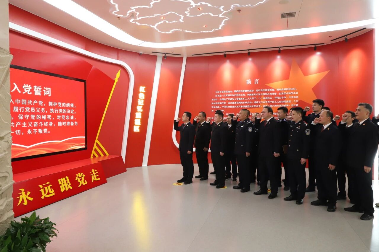 活动在庄严的重温入党誓词仪式中拉开帷幕。全体党员整齐列队于红色宣誓墙前,在机关第七党支部书记吴迪的领誓下,郑重举起右拳,铿锵有力的誓言响彻展厅,坚定了对党忠诚、为民司法的初心与使命。