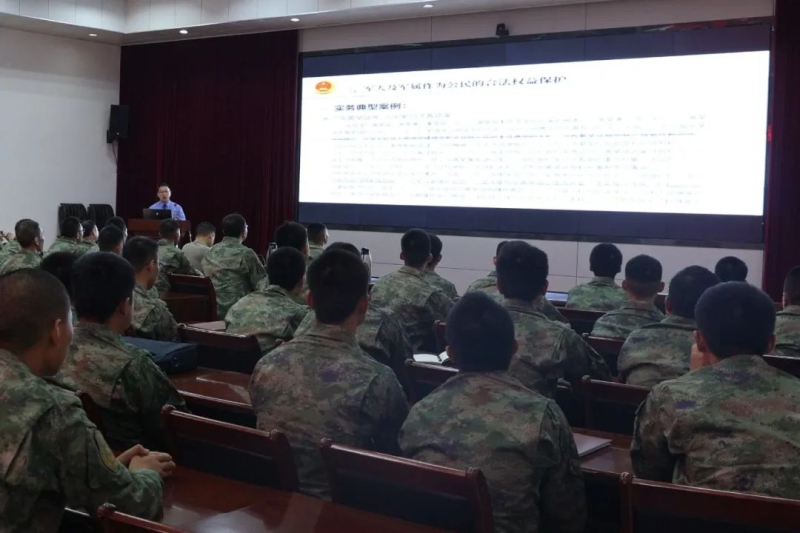 在“送法进军营”活动中,市检察院四级调研员刘前俊与官兵代表进行了面对面的座谈交流,及时了解了新时代官兵对涉军维权工作的主要诉求;第六检察部检察官助理李志坚以“涉军权益保护法律制度及典型案例介绍”为主题,着重围绕“现役军人和军属的合法权益保护、退役军人和家属的合法权益保护、军人和军属作为公民的合法权益保护、涉及军队和军人的国家利益和公共利益保护”等方面,结合典型案例进行了普法授课,现场解答了官兵提出的“子女上学优待、预付款消费、民间借贷、农村宅基地继承、养老集资诈骗、特种作业安全责任”等涉法问题,并结合检察机关“四大检察”的工作职能、“能动检察”的工作理念,向官兵们宣传普及了检察机关在涉军维权工作中的独特地位和作用。