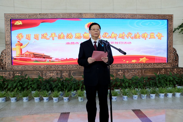 12月4日上午,南昌市人民检察院举办“学习习近平法治思想,强化新时代法律监督”检察开放日活动,15位人大代表、政协委员、人民监督员、特约检察员、群众代表和7家省市级媒体记者朋友受邀走进南昌市检察机关,共同学习领悟习近平法治思想,学习宪法法律,了解和参与检察工作。