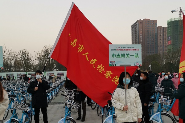 “绿道活起来 市民动起来”。2021年1月4日,新年上班第一天,南昌市人民检察院组织40名干警到象湖风景区参加了南昌市第十届迎新骑行健身活动。我院作为市直机关一队,全体成员在院党组成员、政治部主任戴雪玲同志的带领下,大家积极参与、统一着装、精神饱满,且首先到达会场、首先列队完毕,展现了市检察院过硬的作风和良好的形象,受到了主办方市体育局领导的肯定表扬。活动开始后,大家观看了全民健身项目展示、健身抽奖,我院干警杨治华同志作为活动代表抽取了幸运数字“7”。接着集体奏唱了国歌,聆听了龙国英副市长的主持讲话,市领导为骑行健身活动鸣笛发令。大家骑着市政公用集团提供的共享单车,迎着暖暖的朝阳,畅游了美丽的冬日象湖。大家纷纷表示:“参加骑行健身活动非常有意义,既锻炼了身体、又欣赏了美景、还交流了感情。”最后大家在终点的网红建筑——鸟屿云浮塔旁合影留念。