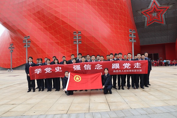 4月28日上午,南昌市检察院机关青年干警来到南昌军事主题公园开展“学党史、强信念、跟党走”党史学习教育。在“五四”青年节即将到来之际,引导他们厚植爱党、爱国、爱社会主义的情感,让红色基因、革命薪火代代传承,打造一支政治忠诚、业务精湛、作风过硬、勇于担当的南昌检察青年队伍。