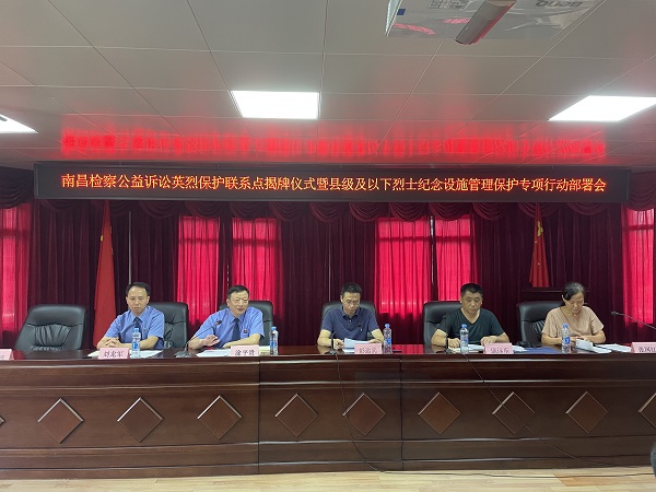 近日,退役军人事务部、最高人民检察院联合下发了《关于开展全国县级及以下烈士纪念设施管理保护专项行动的通知》。收到通知后,市检察院主动与市退役军人事务局沟通联系,商定建立检察公益诉讼英烈保护联系点,推动这项工作在南昌落实落地。7月20日上午,南昌检察公益诉讼英烈保护联系点揭牌暨县级及以下烈士纪念设施管理保护专项行动部署会在南昌市烈士陵园举行。市检察院党组成员、副检察长涂平贵,市退役军人事务局副局长彭达兵为联系点揭牌。南昌市及部分基层院公益诉讼部门负责人与退役军人事务部门的相关同志参加了活动。