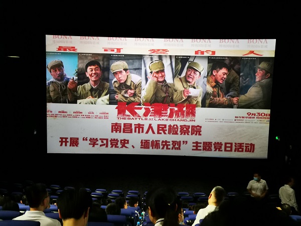 百年征程波澜壮阔,百年初心历久弥坚。在庆祝中国共产党成立100周年和祖国母亲72岁生日之际,为持续激发全院党员干警学党史、践初心的热情,推动党史学习教育走深走实,9月30日,南昌市人民检察院组织机关全体党员干警集中观看红色影片《长津湖》,开展“学习党史·缅怀英烈”主题党日活动,引导全院党员干警知史爱党、知史爱国,进一步坚定理想信念,厚植爱党爱国情怀。