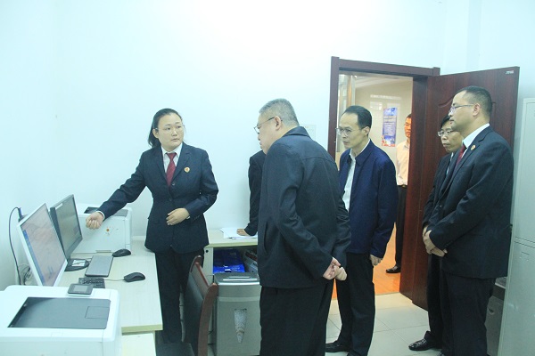 回到该院后,从办公楼一楼的案管中心、“12309服务中心”一直到五楼,刘鸿斌走进每间办公室,与每位检察官、检察官助理、行政人员、聘用制书记员亲切交谈,询问每个人的工作情况。所到之处,对在紧张、简陋的办公环境中,大家所表现出来的敬业拼搏精神,特别是在交流中,听到该院1月至9月的62项检察核心业务数据中有30项业务指标位于全市基层院前三名的情况后,刘鸿斌给予了充分肯定和高度评价。