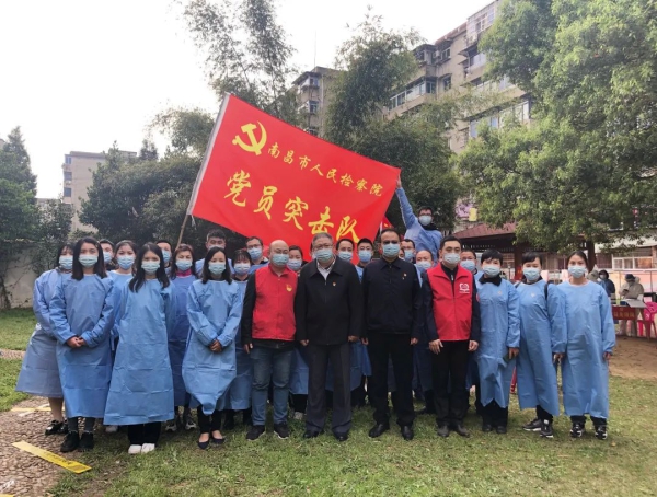 3月19日上午,党员突击队13名同志准时到达西湖区绳金塔街道公交社区,与社区工作人员一道开展核酸检测有关工作。院党组书记、检察长刘鸿斌亲临现场进行指导。
