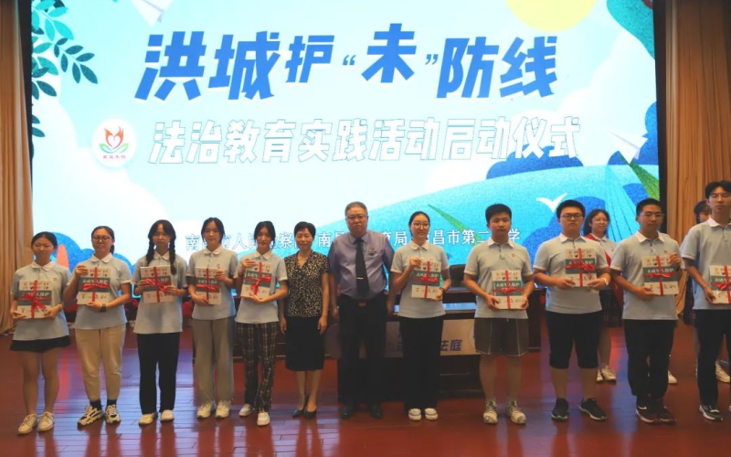 为进一步丰富全市青少年法治教育形式,提升法治教育的参与度,全方位展示未成年人保护职能部门在保护未成年人身心健康、保障未成年人合法权益方面的防护引导作用,构建具有南昌特色未成年人普法教育模式,近日,南昌市检察院联合市教育局在南昌二中开展“洪城护‘未’防线”法治教育实践活动。南昌市检察院党组书记、检察长刘鸿斌,南昌市委教育工委书记、市教育局局长黄琰,南昌二中校长蔡爱民,市检察院、市教育局工作人员和南昌二中师生代表参加此次活动。