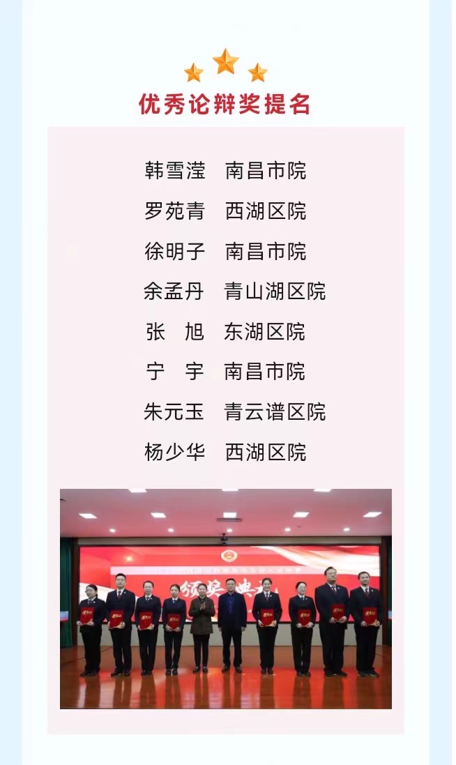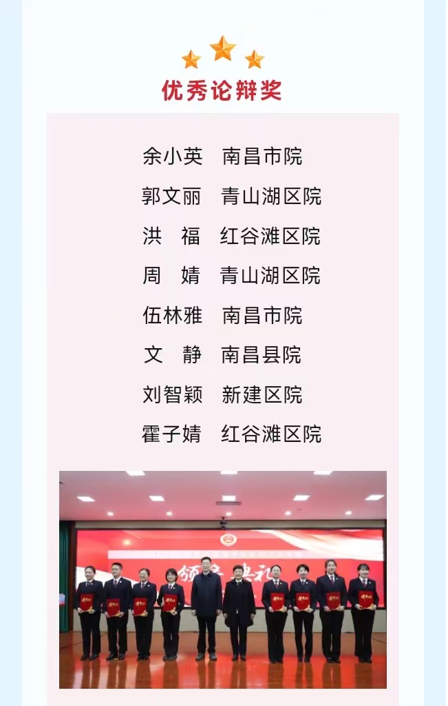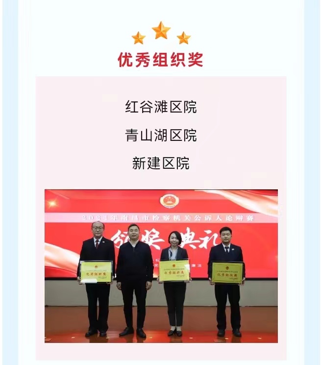凡是过往,皆为序章。决赛就此落下帷幕,南昌市检察院将围绕“高质效办好每一个案件”,以赛代训、以赛促学、以赛提升,持之以恒建强队伍、提升素能、练好内功,推进检察队伍专业化建设,为检察事业高质量发展提供人才支撑。