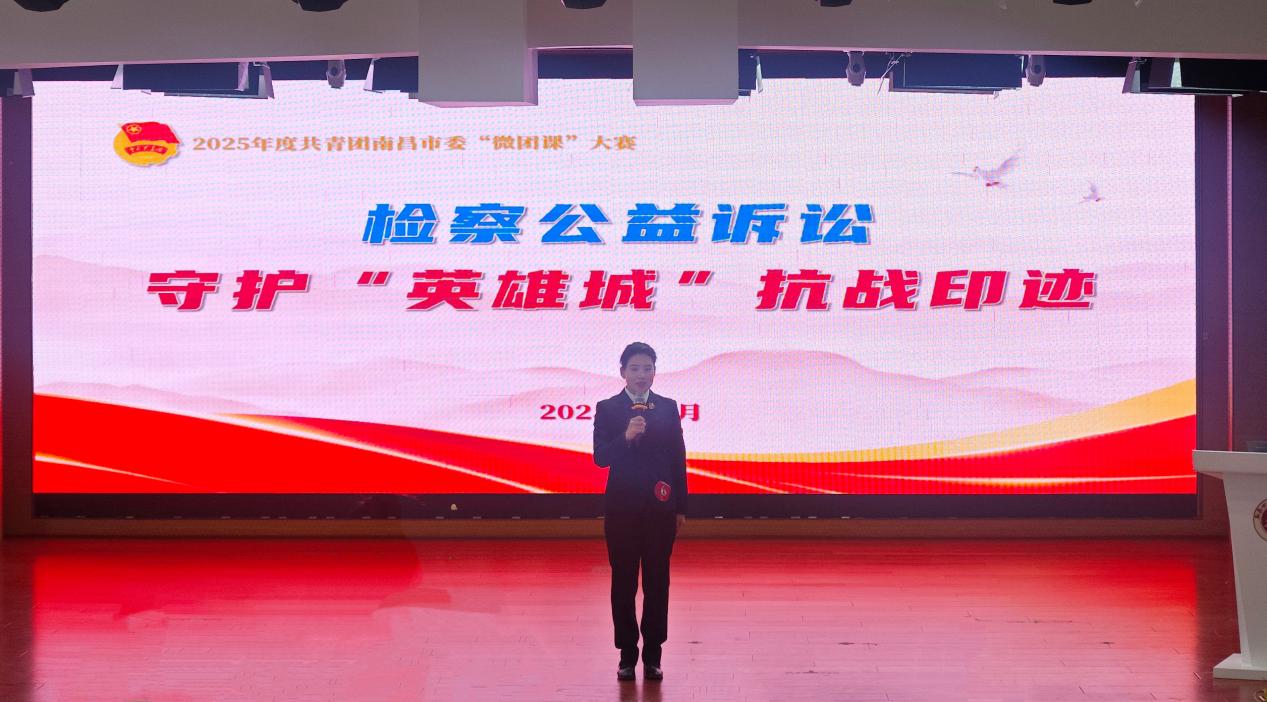 近日,由南昌市教育局、共青团市委和市学生联合会联合举办的2025年度“微团课”大赛圆满落幕。我院第六检察部干警杨治华凭借《检察公益诉讼守护“英雄城”抗战印迹》主题团课,在涵盖大中小学教师、高校青年学生及市直机关单位的74名参赛选手中脱颖而出,荣获大赛三等奖,充分展现了南昌检察的青春风采与高质效履职成果。