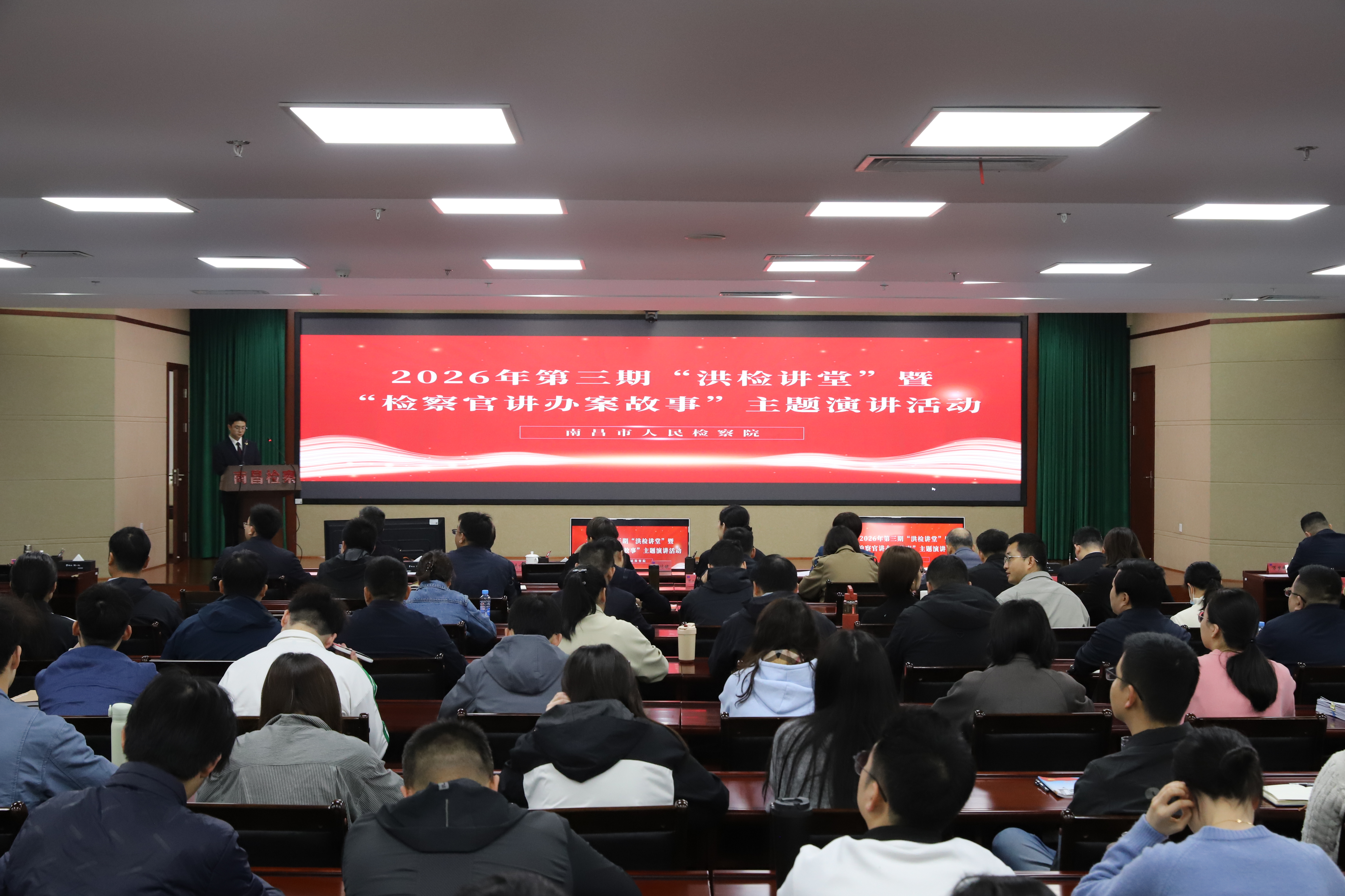 为深入学习贯彻习近平法治思想,生动展现新时代南昌检察干警司法为民、公正司法的履职风采,4月7日上午,南昌市检察院举办2026年第三期“洪检讲堂”暨“检察官讲办案故事”主题演讲活动。院党组书记、检察长及院领导班子成员出席,全市两级院全体检察干警通过视频会议系统同步参加。