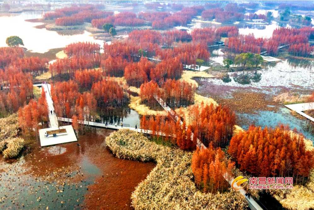 鱼尾洲湿地公园上“红妆” 进入最佳观赏期